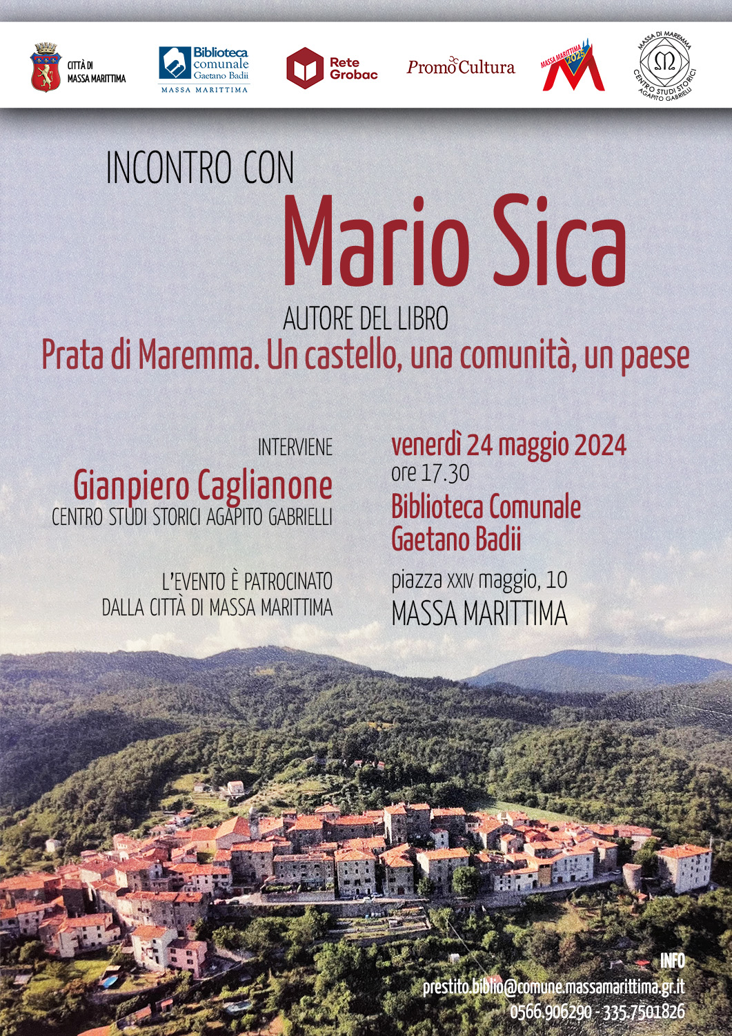 Venerdì 24 maggio, alle ore 17 e 30, alla biblioteca comunale Gaetano Badii di Massa Marittima si terrà l’incontro con Mario Sica, autore del libro "Prata di Maremma. Un castello, una comunità, un paese".