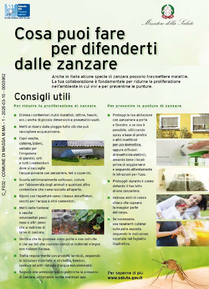 Anche in Italia alcune specie di zanzare possono trasmettere malattie. La collaborazione di tutti i cittadini è fondamentale per ridurne la riproduzione e di conseguenza conte4nere il numero di punture.