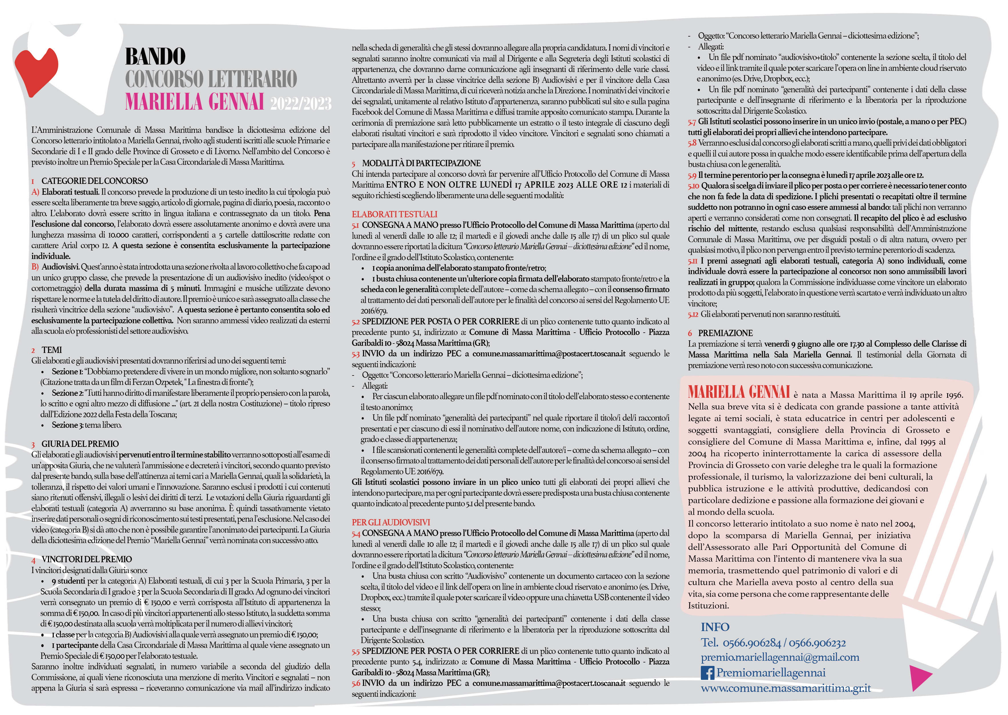 Info: 0566906284 – 0566.906232 premio.mariellagennai@gmail.com