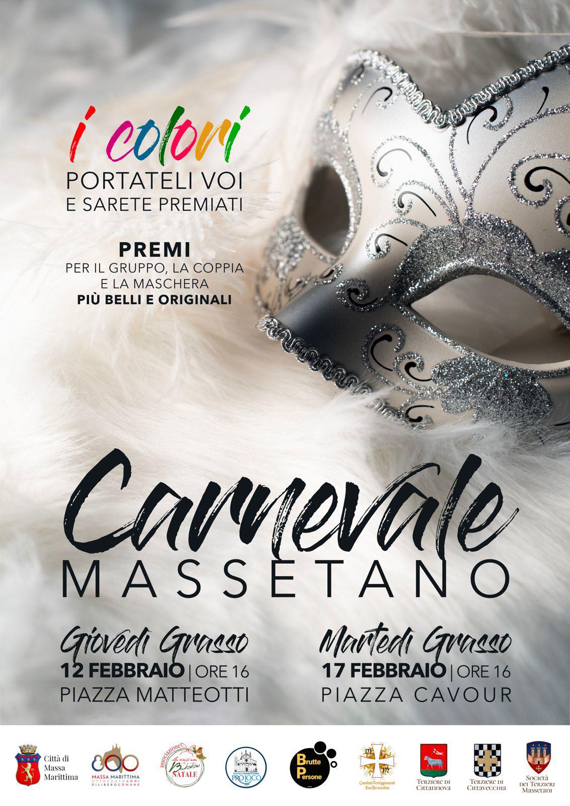 Massa Marittima si prepara ad accogliere il carnevale 2026 con le iniziative promosse da quattro realtà associative del territorio in collaborazione con il Comune: Proloco, associazione Le Brutte Persone, associazione La Casina di Babbo Natale e Comitato festeggiamenti San Bernardino.